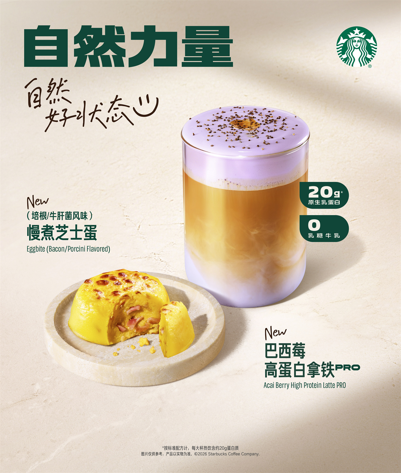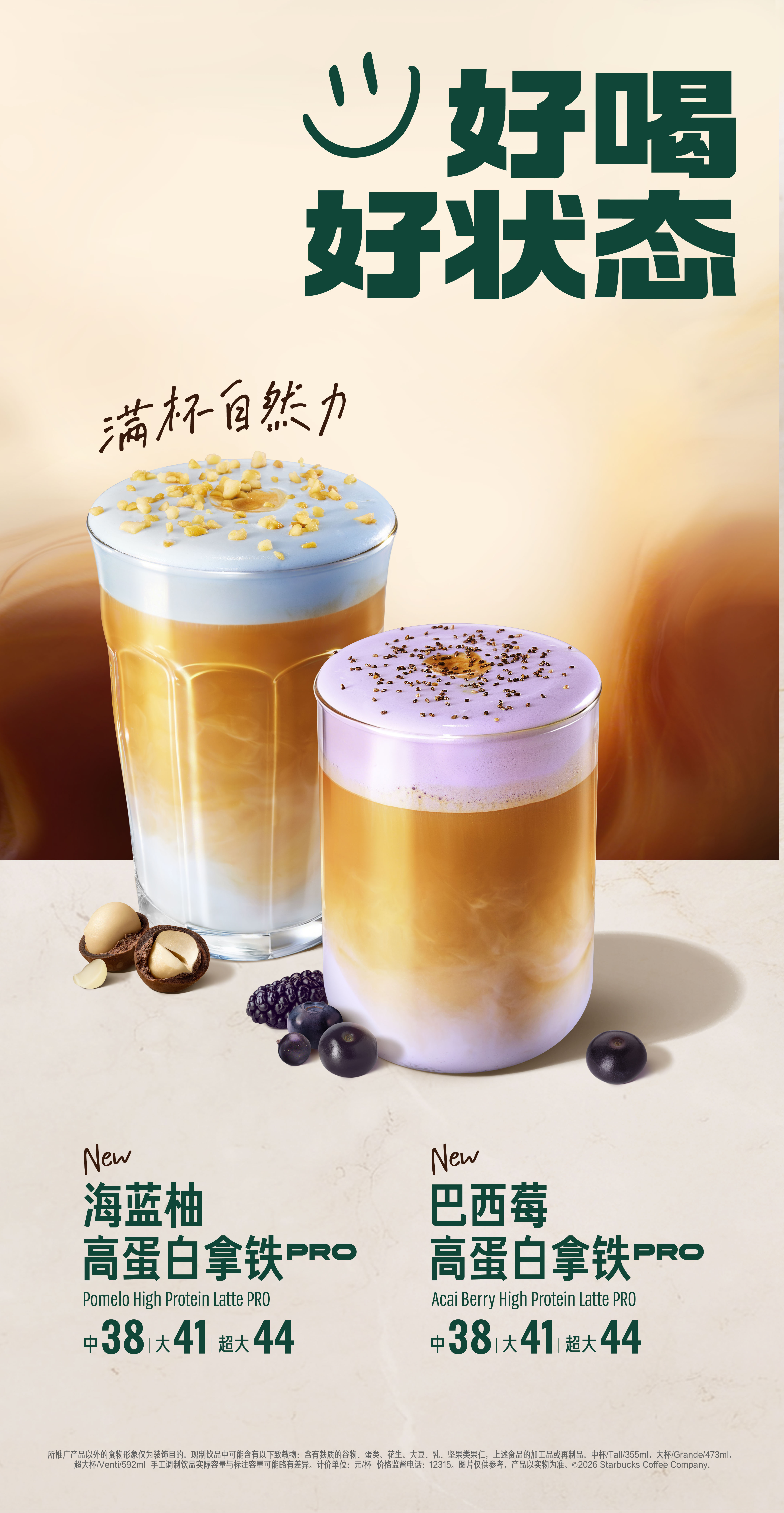 高蛋白拿铁PRO与高蛋白抹茶拿铁PRO、巴西莓高蛋白拿铁PRO、海蓝柚高蛋白拿铁PRO、慢煮芝士蛋系列,组成了星巴克“饮品+食品”的完整优质蛋白产品组合。无论是早餐充能、午间补能,还是日常办公、运动充能,顾客在多元生活场景下的优质蛋白需求,都能得到满足。