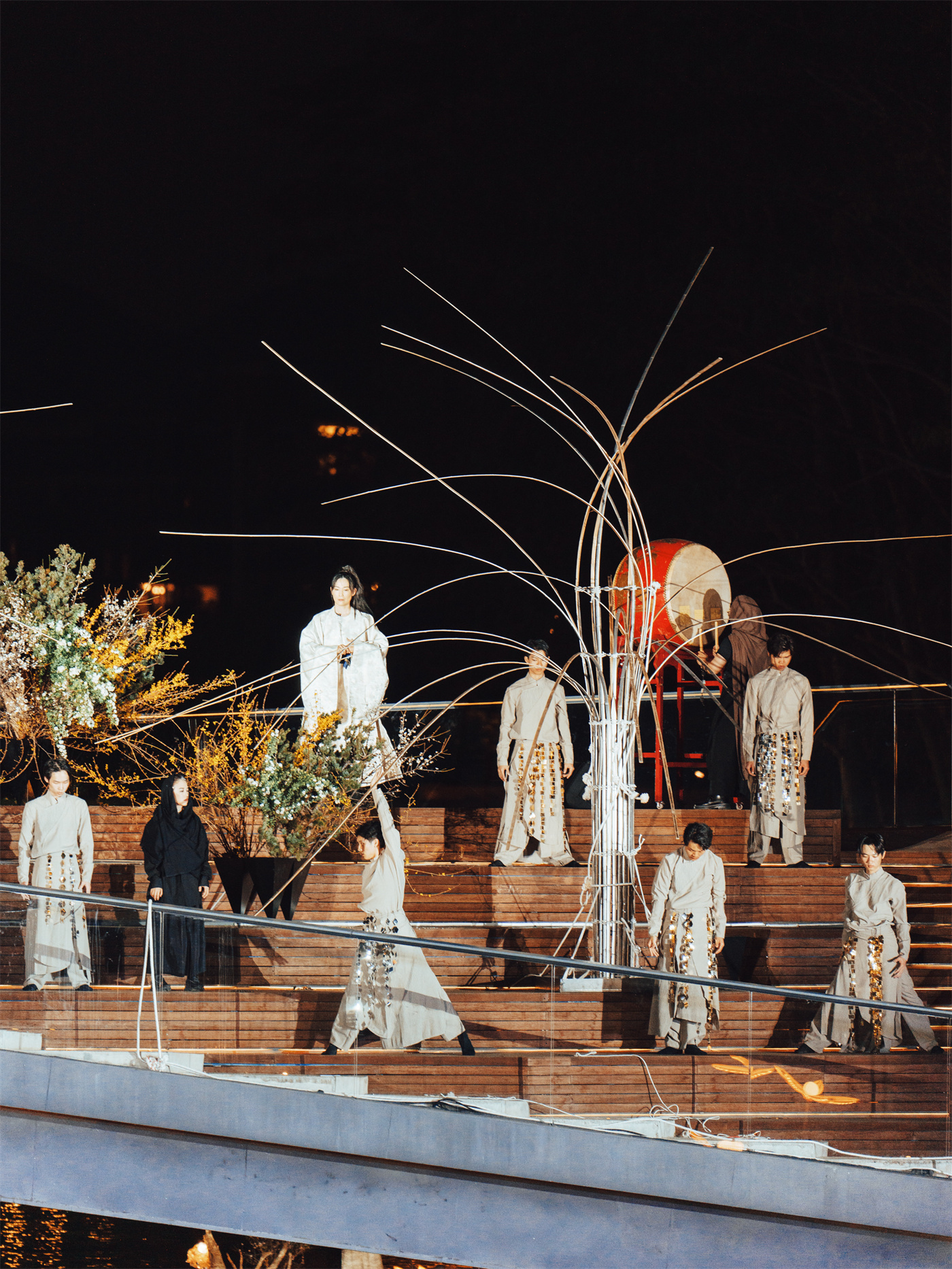 这是一种你从未见过的表演形式:它打破舞台边界,不以言语叙事,而是以插花为笔、舞蹈为墨、光影为韵。在这个关于勇气与复苏的寓言中,少女为寻回被盗的“花之心”踏上觉醒之旅,所有的情感转折都寄托于繁花的盛开与装置的变幻。在黄浦江的璀璨夜景与摩天光影的映衬下,草木搭起的阶梯将引领你步入那个充满巧思的阿卡夏幻境。这不仅是一场表演,更是一次视觉与心灵的双重洗礼。