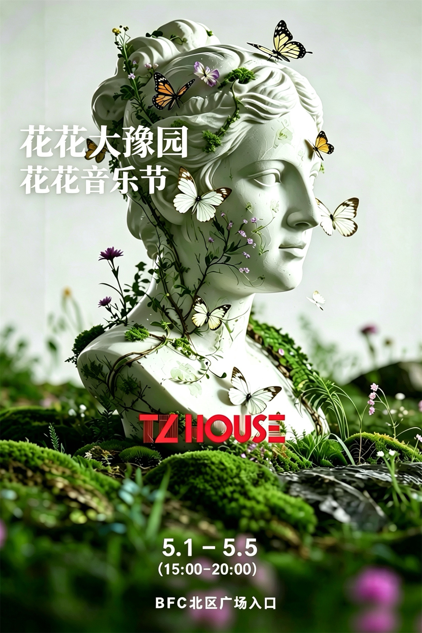 如果说花剧场是夜间的华章,那么白天的BFC则属于狂欢的音符。5月1日至5日每天15:00-20:00,沪上知名实力音乐现场TZ HOUSE将在BFC北广场掀起一场 “花花音乐节”。在户外花海的包裹中,多位实力派驻唱艺人将轮番登台,用流行与摇滚的经典旋律为都市潮人打造高品质的音乐社交空间。这也预示着即将开业的TZ HOUSE BFC店,将成为外滩夜经济的全新音乐地标。