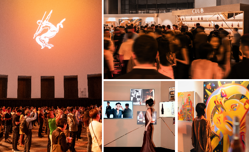 在这场别具匠心的庆典现场,时光长廊串联起人头马CLUB 40年间的印记与辉煌。入口处的40周年里程碑在宾客点亮中熠熠生辉,复古广告与历代酒款呈递在眼前,钩织着人头马CLUB从初入中国到如今的包装迭代的历史时刻,但其标志性八面酒樽与非凡品质始终如一。随之前行,船舶远行的影像牵引出城市地标,见证着中国城市文化的多面与变化。而在另一侧,多面立柱陈列着人头马CLUB与艺术家们的联名之作,每一款特别版的诞生都是人头马CLUB在时间与创意的滋养下不断成长的证明。
