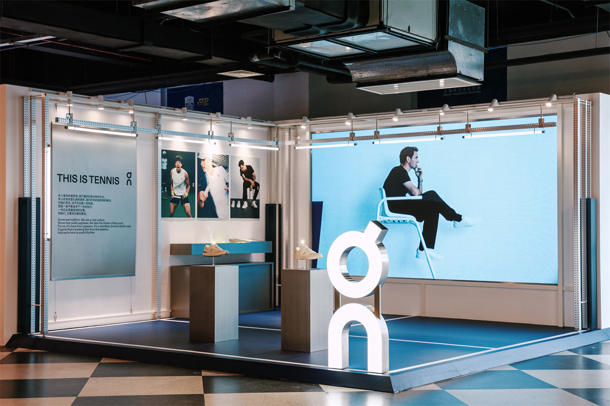 2025上海劳力士大师赛于今日优雅开幕,作为赛事官方合作伙伴,On昂跑旗忠网球中心设立主题展位。展位设计灵感源自真实网球赛场,品牌将球场线条、球网与场内大屏等标志性元素进行解构与重组,巧妙融入空间设计,营造出沉浸式的观展体验。