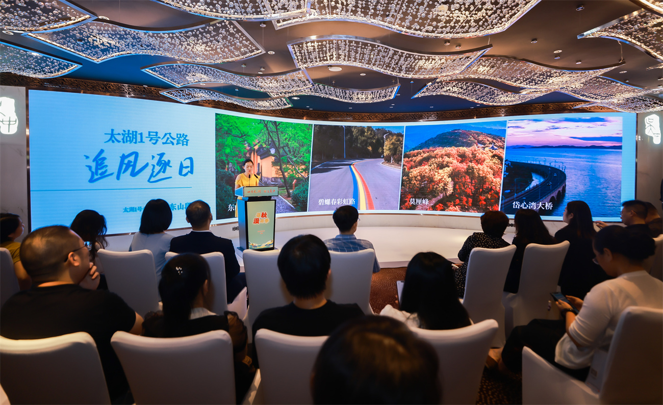 昨天(9月28日),“苏州太湖1号公路 伙伴出片计划”活动在太湖畔开启,30位网红从太湖西山岛集中出发。今天,来自吴中的推介官把186公里的“太湖1号公路”吴中段也带到了推介会现场。“太湖1号公路”吴中段宛如一条璀璨的纽带,将吴中大地的自然美景与人文底蕴紧密相连,带领游客们共赴一场“行至水穷处,坐看云起时”的诗意之旅。