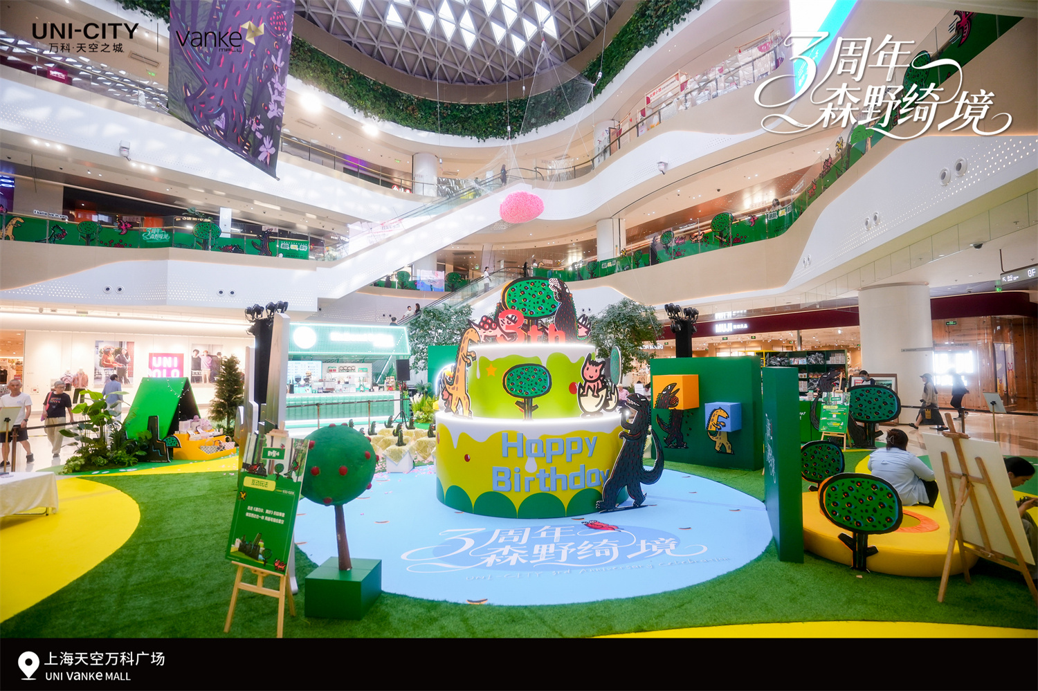 为举办3周年「森」日派对,上海天空万科广场精心筹备了超二十场妙趣横生的线下活动,涵盖庆生蛋糕派发、人偶巡游、手工DIY、主题音乐会、运动体验等多种类型,无论是天性爱玩的小朋友,还是兴趣丰富的成年人,都能在这里找到假期的乐趣。