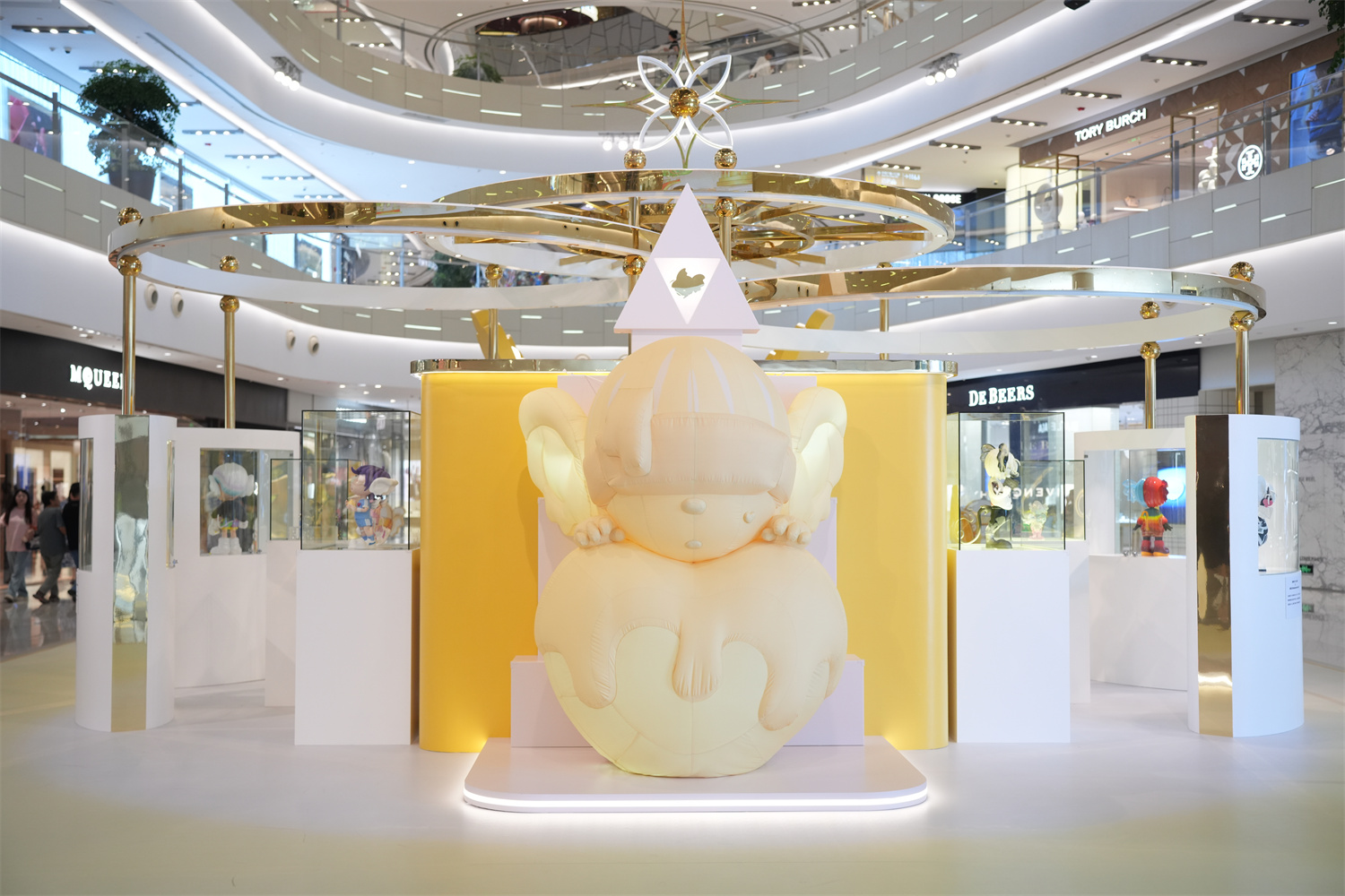 Marsper静坐在简约白王座上,头顶三个圆圈交叠交织成图腾,顶端点缀星瓣,星辉与花瓣在光中交融。光影、图腾与Marsper交汇,仿佛沉入爱与魔法交织的梦境,成为这场潮流之旅的见证者。这里陈列着多款经典Marsper展品,涵盖品牌联名款、大师款、限定款等多个系列。