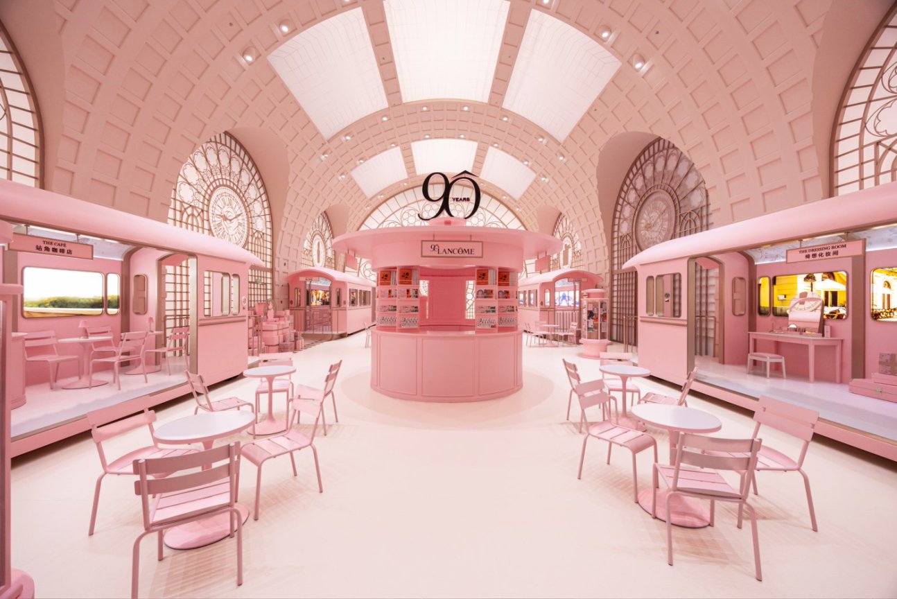 兰蔻90周年“幸福专列”限时大展以火车及旅行的意向为灵感,以“千姿之美”、“先锋精神”、“幸福此刻”三大品牌精神为叙事线索,呈现五大空间,展示了兰蔻典藏档案馆的海量史料,全景式呈现品牌自创立以来的历代动人故事。