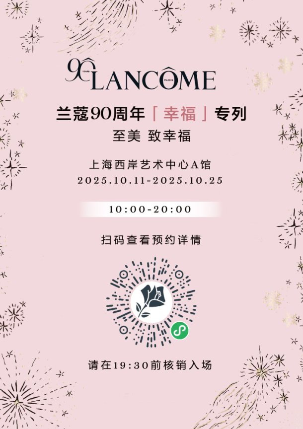 兰蔻90周年“幸福专列”限时大展将持续到10月25日,观众可关注兰蔻各大官方平台,或搜索兰蔻会员小程序预约入场。