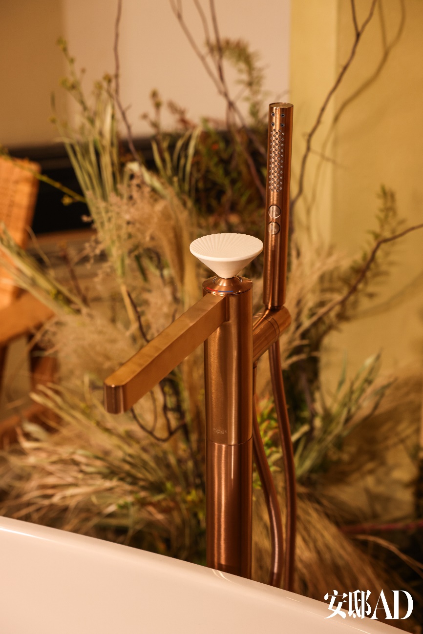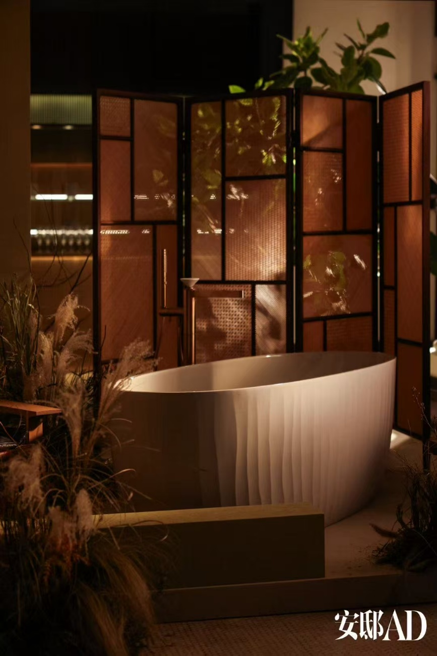 在本届AD Corner展区,科勒携两款代表性卫浴作品登场,来自科勒高端产品线——科勒精选(Kohler Exquisite)的旭珂1.7米椭圆形清雅石纹理浴缸(风舞漫沙),以及芮怡落地式浴缸花洒龙头。作为本次“东方自然之韵”主题展陈的重要一环,科勒展区以松竹植艺与大地色系构筑出温润的空间秩序,步入其间,能在光影流动中感受到自然的呼吸节奏。旭珂浴缸、芮怡龙头的材质、线条及水感与空间相互映衬,共同营造出流动而宁静的东方意境。