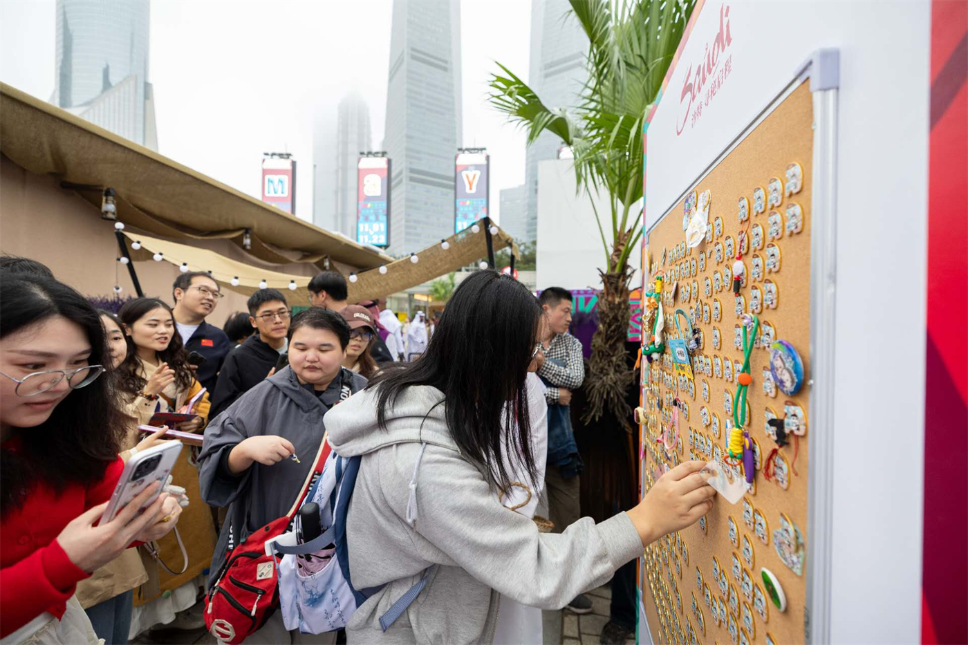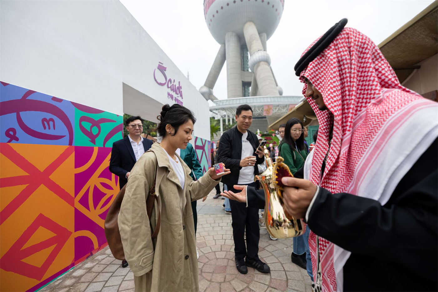 11月8日,上海外滩东方明珠塔城市广场上,“沙特小镇”沉浸式体验活动热情启幕。活动首日气氛热烈,现场人流如织,各展位前早早排起长龙,“沙特小镇”已成为今冬沪上最具异域风情的打卡热点。