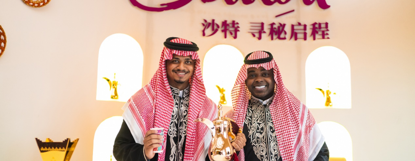 走进Hospitality接待区,空气中弥漫着椰枣的甜香与姜香微辛的沙特咖啡气息。游客在此驻足,品味第一口沙特的热情。