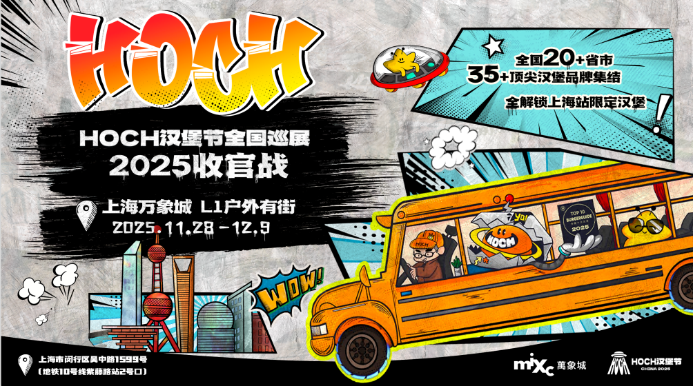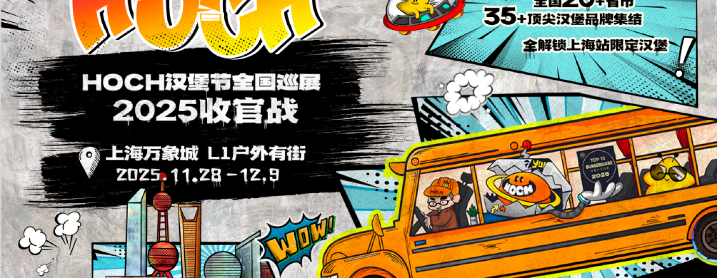 本次HOCH汉堡节上海站堪称本年度“规模最大,品牌最大,阵容最全”。11.28-12.9,12天超长待机,无门票直接来!来自全国20+座城市的35+家顶级汉堡玩家空降上海万象城,2025年度十大汉堡榜单官宣在即,多款上海站限定新品加载中……