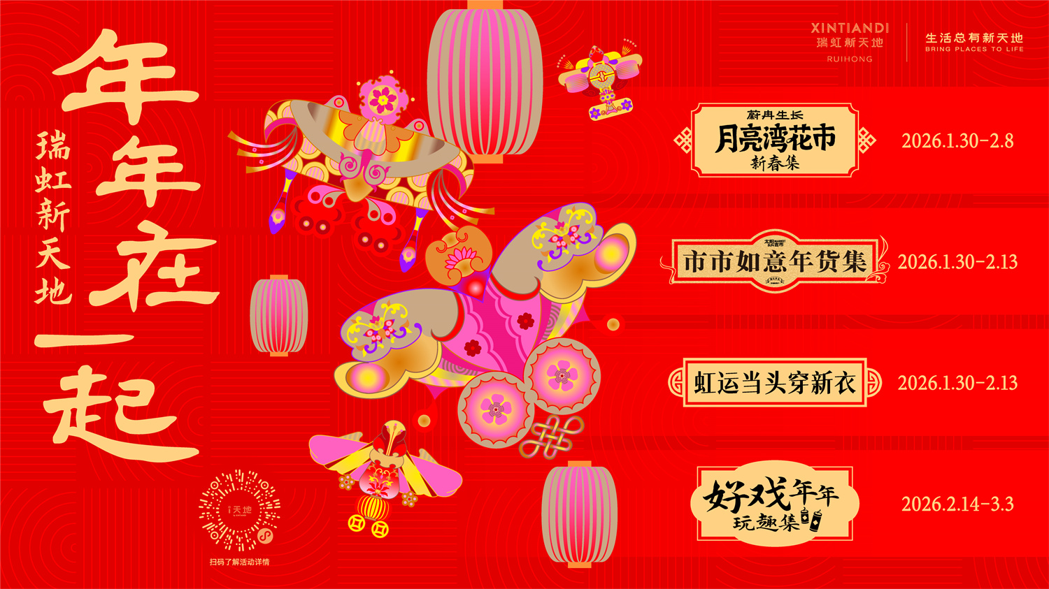 2026年1月30日至3月3日,瑞虹新天地以“新有奇骥·年年在一起”为主题,围绕“新有奇骥,不在一跃,而在长行”的核心理念,推出一系列融合传统与现代的新春活动。本次特邀马来西亚艺术家Brindha Kumar创作主题艺术装置,融合敦煌“翼马”等传统元素,遍布太阳宫与月亮湾,以美陈诠释前行精神。活动通过年货年花主题市集、非遗体验、民俗演艺的丰富体验与礼遇,与消费者共迎红火新年,传递“生活总有新天地”的温暖信念。
