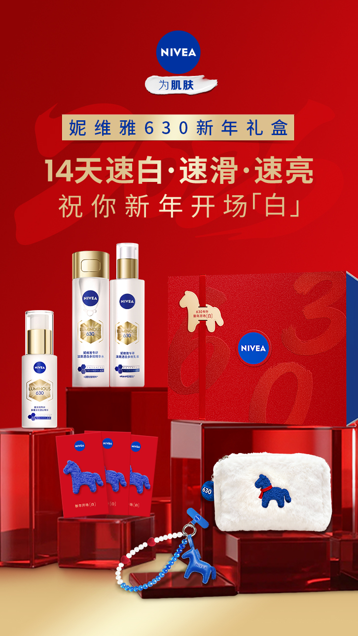 新年焕新,光彩开场。妮维雅推出新年限定630「开场白」礼盒,以经典正红映衬630暗纹,烫金骏马造型束带利落收束,将新春仪式感与德系精研质感巧妙相融,邀请消费者写下属于自己的新年开场「白」。