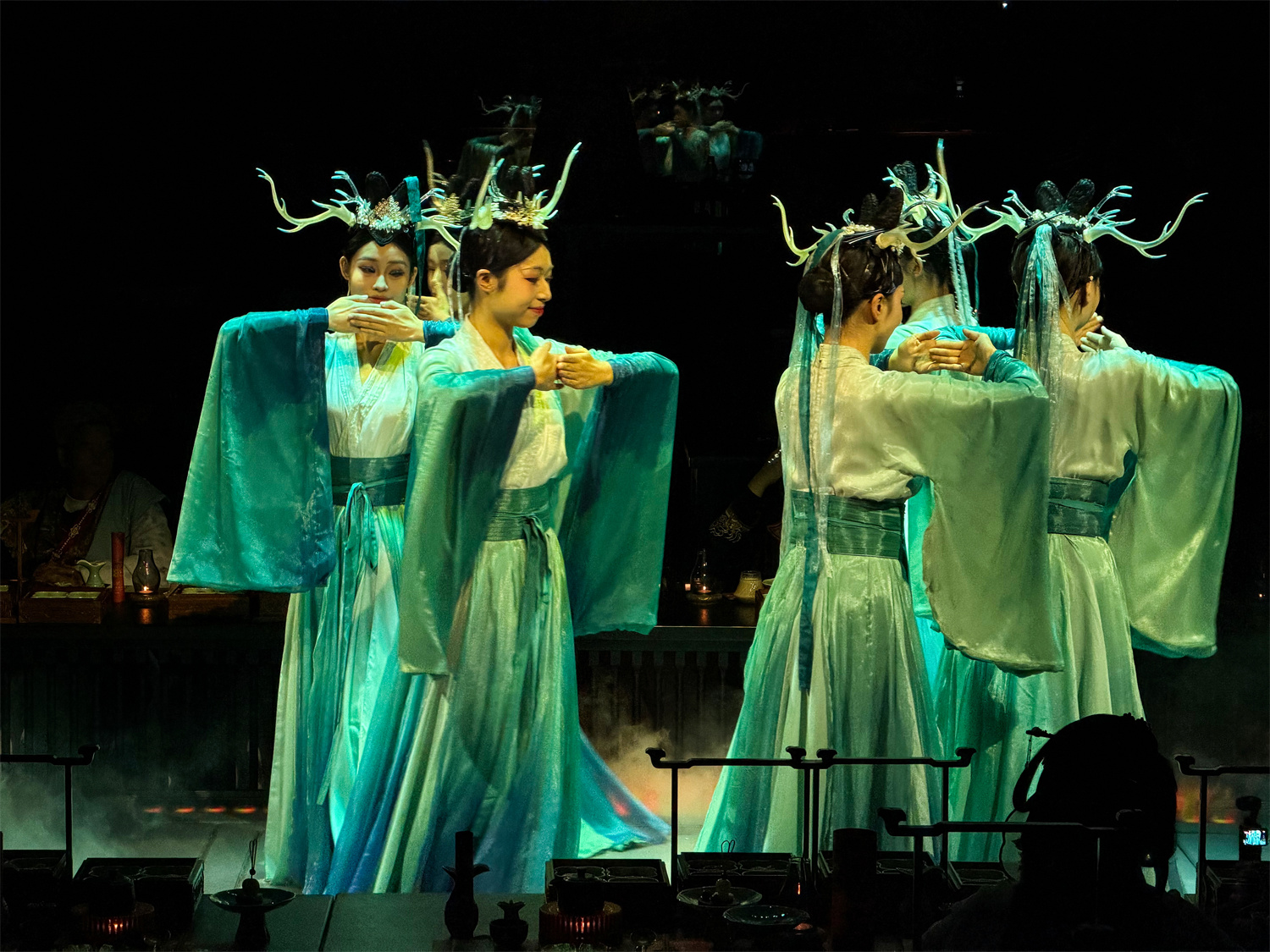 节目诠释:楚汉风云起,鸿门藏杀机。一念决生死,一宴定乾坤。舞乐短剧《鸿门宴》,取材于公元前206年楚汉争霸的关键一宴。那场表面觥筹交错、实则危机四伏的宴饮,堪称改写王朝命运的权谋缩影。楚霸王项羽设宴鸿门,名为犒赏,实则欲除刘邦,席间每一方杯盏都盛满心机较量,每一寸欢笑都暗藏刀光剑影。项羽一念之仁,放走了刘邦,却是放走了一个帝王的命运,从此楚汉纷争烽烟四起,而汉朝的曙光,也在那一刻被点亮,最终改写了中国的历史。此剧结合了傩舞和戏剧双重表演形式,抽丝剥茧还原那风平浪静下的山河动荡,让改变中国历史、重塑华夏命运的天下第一宴从史卷中破壁而出,来到现代沉浸式演艺舞台。傩舞的诡谲面具暗喻人心叵测,剑舞的凌厉锋芒直抵权力博弈。楚服汉装的舞者踏鼓而行,傩面遮不住项羽的优柔、刘邦的机变,剑影映得出谋士的筹谋、武士的戒备。鼓点起落间,重现那场“宴乐”与“杀机”并存的历史迷局,让观者于宴饮光影中,读懂一念抉择背后的历史重量与人性深意,感慨权谋较量中人性抉择胜过刀剑锋芒的千古启示。