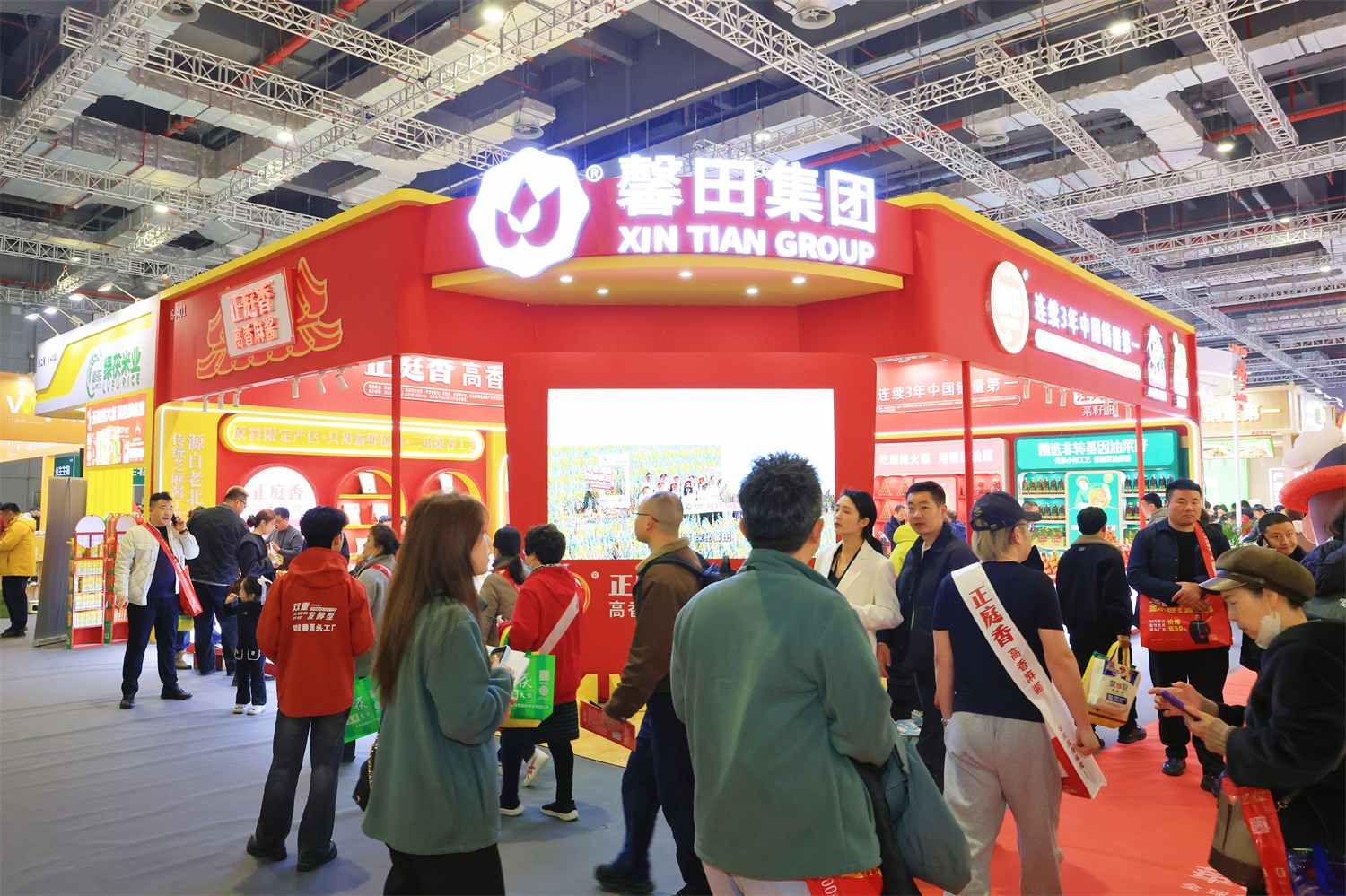 3月5日-7日,2026上海华食展于国家会展中心盛大举行。作为全球旗舰级餐饮食材盛会,本届展会规模达15万平方米,集结近 2000家海内外优质参展商,聚焦火锅食材、预制菜、水产食品、中央厨房与包装设备、新式茶饮五大核心赛道,搭建起餐饮食材全产业链高效交流的合作平台。馨田集团携旗下馨田火锅油碟、正庭香高香麻酱、汪大妈菜籽油、川麻客66°特麻花椒油四大品牌重磅亮相,以完整产品矩阵和品牌创新成果,受到行业广泛关注。