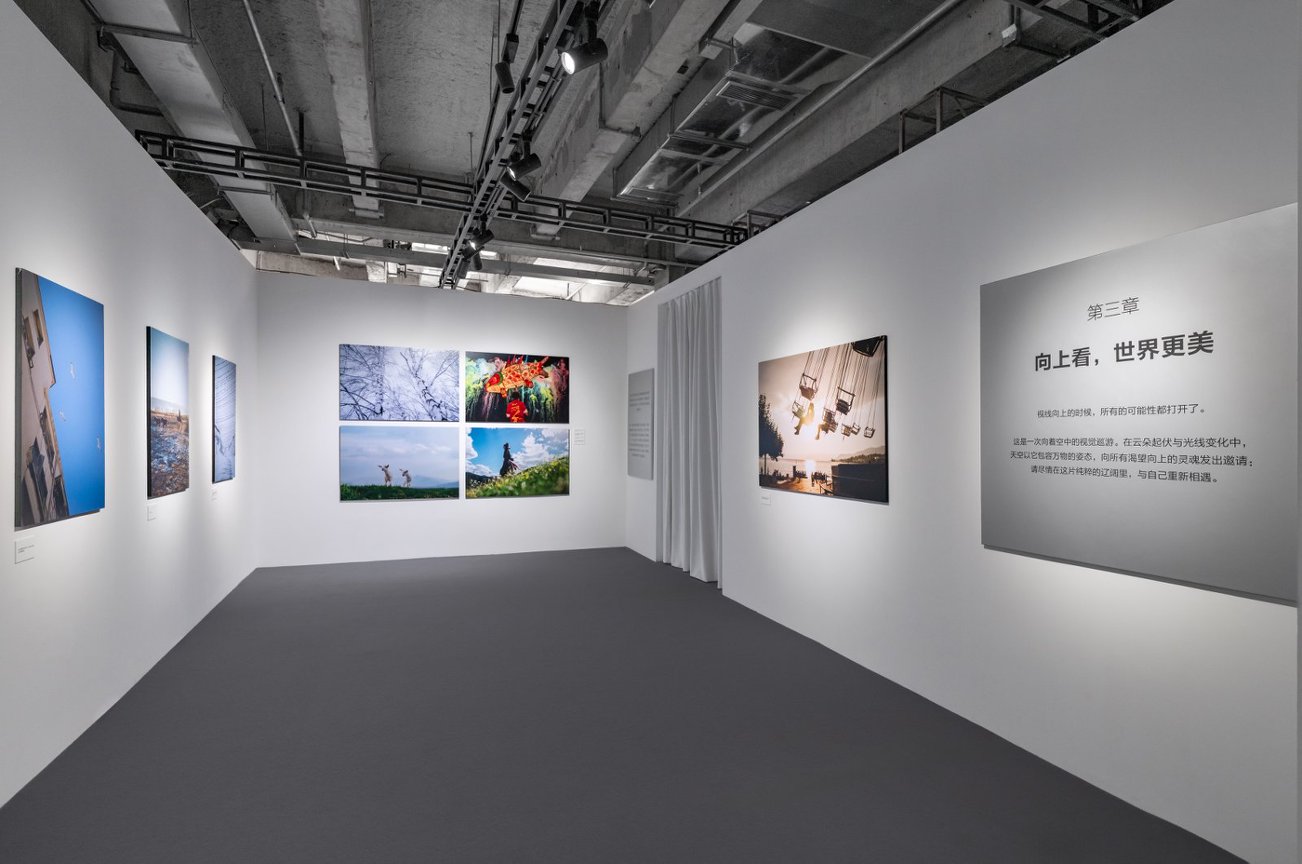 在展览终章,一场向着天空的视觉巡游缓缓展开。在树影起伏与光线变化中,天空以它包容万物的姿态,向所有渴望向上的灵魂发出邀请,观众抬头向上,沉浸在这片纯粹的辽阔,看见更美的世界。温柔的自然意象与细腻光影相融共生,织就一方感官之境,引领我们步入一个大千世界在空中显影的诗意空间。