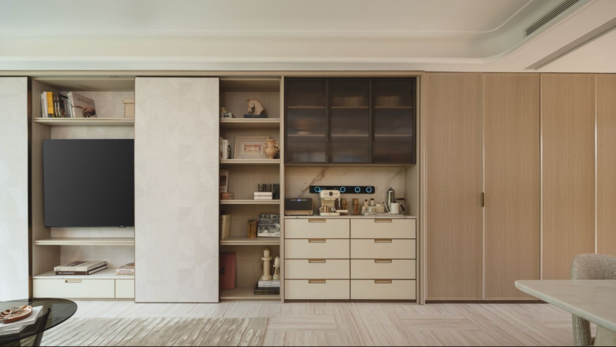 全屋从入户八百库到客厅、厨房的定制收纳体系,把日常储物需求全考虑到了。这些细节没有华丽噱头,却都是华润从业主实际生活里打磨出来的,精准戳中了很多购房者的居住痛点。
