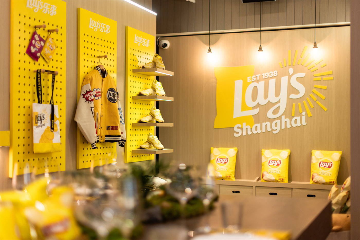 店内还特设品牌零售专区,集结多款乐事限定周边好物,印有土豆元素的杜邦纸袋、趣味灵动的薯片发箍、潮牌联名服饰等错落陈列,将乐事土豆的创意美学从餐桌延伸至日常点滴。这些兼具设计感与实用性的单品,不仅是年轻人用餐打卡之余的心仪之选,更让“共创快乐”的品牌理念自然融入年轻人的多元生活场景。